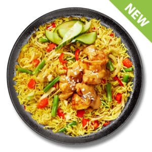 425gr | 439 kcal | 40g eiwit | 38,3g koolhydraten | 12,9g vet Kip, G...