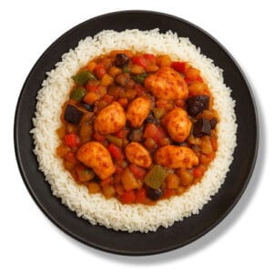 400gr | 438 kcal | 41,0g eiwit | 49,4g koolhydraten | 7,4g vet Kip,...